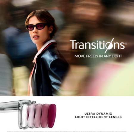 Perfect for when you're on the move, elevate your eyewear with Transitions® lenses. Available now at LensCrafters.